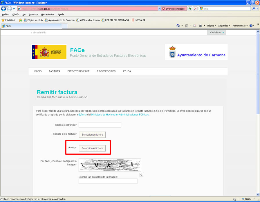 Punto de entrada de facturas electrónicas del Excmo. Ayuntamiento de Carmona y sus entes dependientes:
